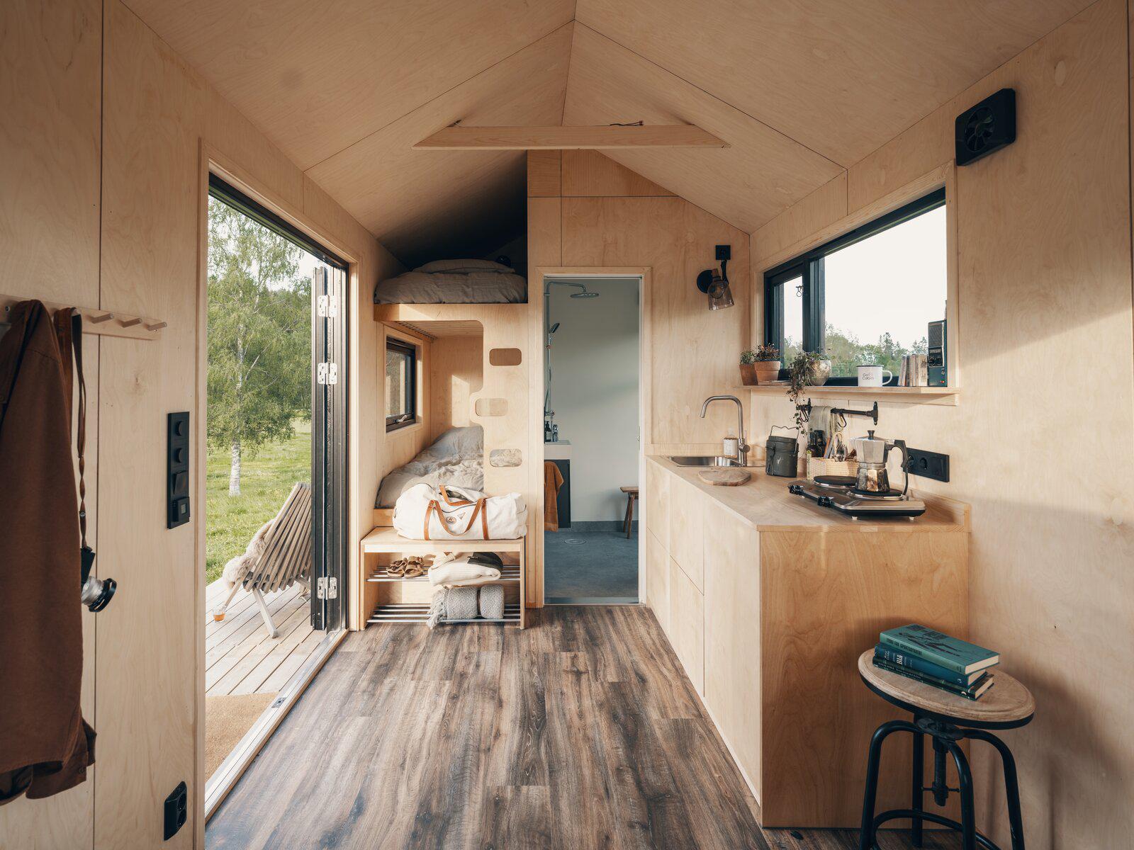 Rast este cel mai mic model al colecției, având doar 16 metri pătrați, interiorul său simplu din lemn reflectând stilul nordic minimalist. Mobilierul încorporat creează un mediu funcțional și confortabil. Un pat înălțat este amplasat sub acoperișul cu două fronturi, în timp ce canapeaua camerei de zi se transformă într-un pat atunci când este necesar. Bucătăria deschisă este dotată cu o mașină de spălat vase compactă, iar baia include duș și o fereastră mare dreptunghiulară. În plus, o masă mică poate fi rabatată din partea de jos a patului supraetajat inferior, oferind o zonă compactă de luat masa. Rafturile de depozitare pot fi găsite integrate în mobilier, profitând la maximum de spațiu.