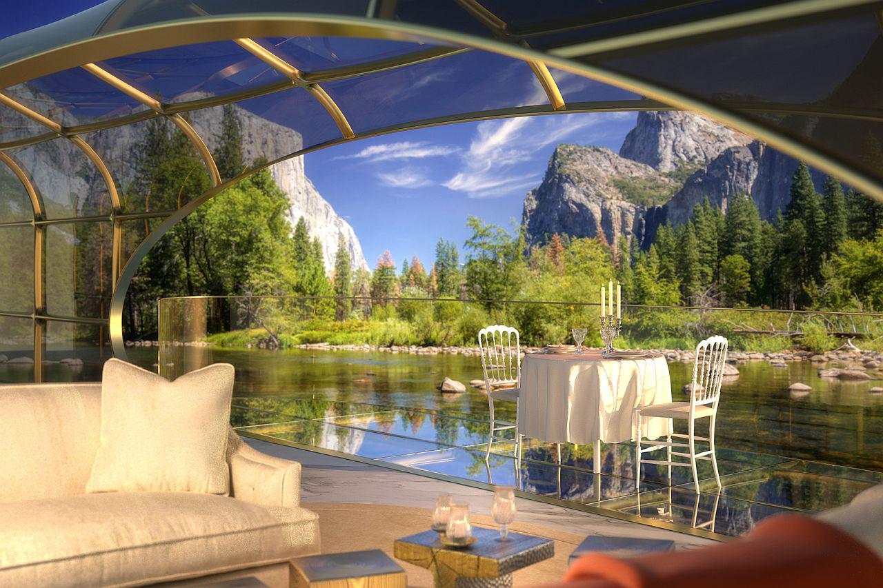 Sticla de nouă generație transformă interiorul prin diferite setări și nuanțe de lumină. Prin simpla apăsare a unui buton, proprietarul și oaspeții pot schimba șapte tipuri de decor interior. Astfel, deși este poate iarnă afară, proprietarul poate fi brusc înconjurat de o frumoasă zi de vară, cu flori și pajiști.