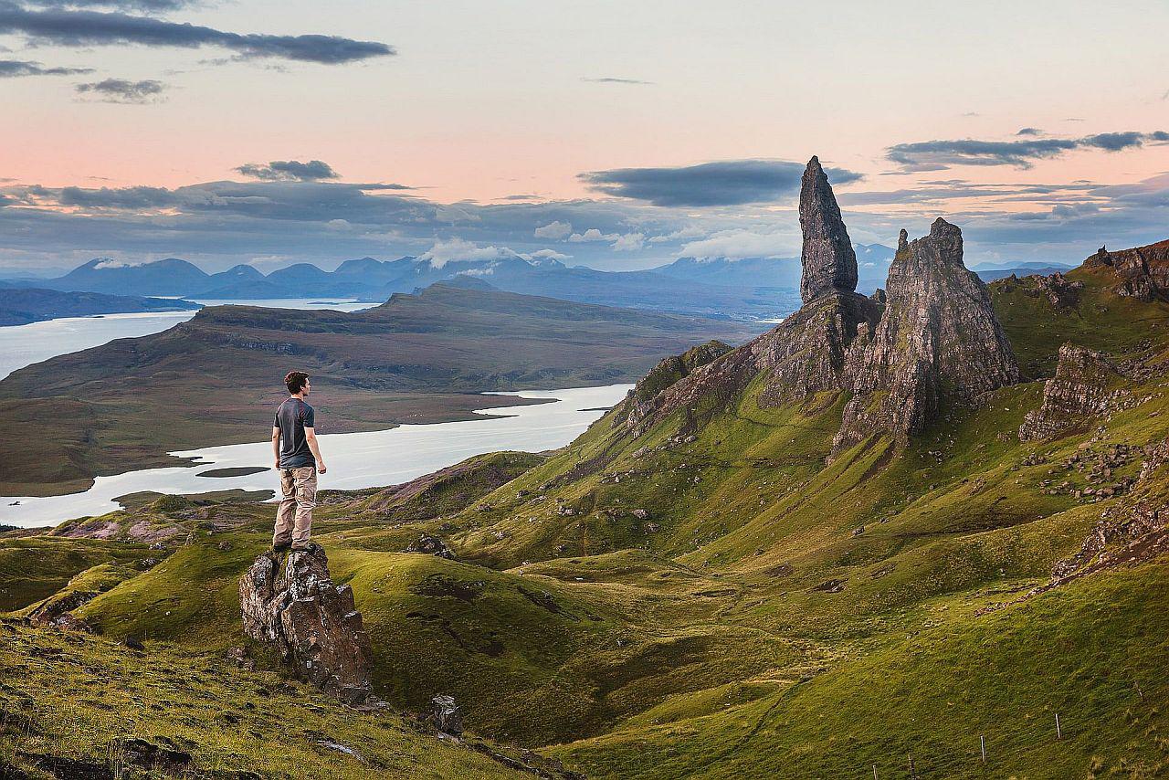 Insula care abundă în peisaje mistice se găsește în partea de nord-vest a Marii Britanii. Skye, care face parte din arhipelagul Hebridelor interioare este locuită de aproximativ zece mii de oameni, dintre care o treime au drept limbă maternă galica scoțiană. Aici, nu doar peisajul, ci și o mare parte a denumirilor arată de parcă ar fi perfecte pentru Stăpânul Inelelor. Deși se găsește în nordul îndepărtat, datorită efectului Curentului din Golf iernile sunt mult mai blânde decât la noi acasă, în schimb și verile sunt reci, ploioase. Găsim puțini arbori și multe câmpuri mlăștinoase aici, iar priveliștea este dominată mai ales de suprafața stâncoasă, pustie a munților Cuillin din mijlocul insulei. Chiar dacă nici cel mai înalt vârf nu ajunge la 1.000 metri, din cauza rocilor fragmentate nu este un teren ușor de drumeții, fiind în schimb perfect pentru alpiniști.