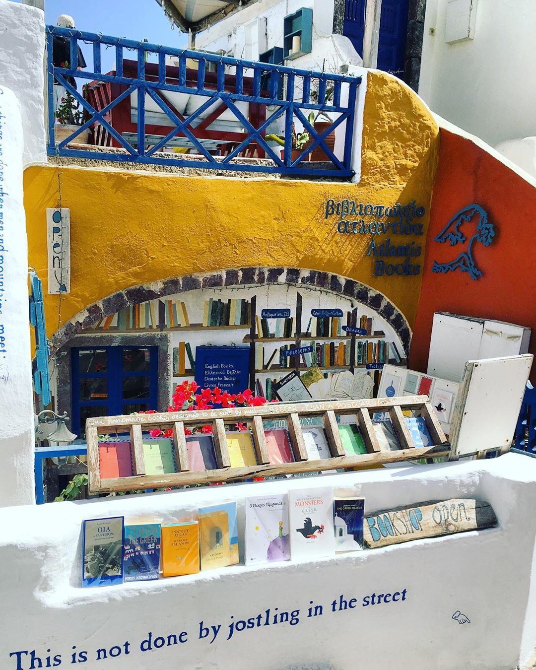 Doi turiști englezi au hotărât să deschidă o librărie la Santorini. Cei doi tineri s-au întors după doi ani pe insula greacă, aducând cu ei alți prieteni și au deschis magazinul Atlantis Books, amenajat într-o locuință săpată în stâncă.
