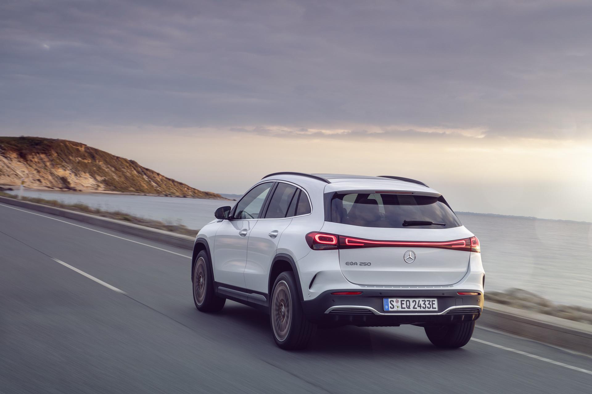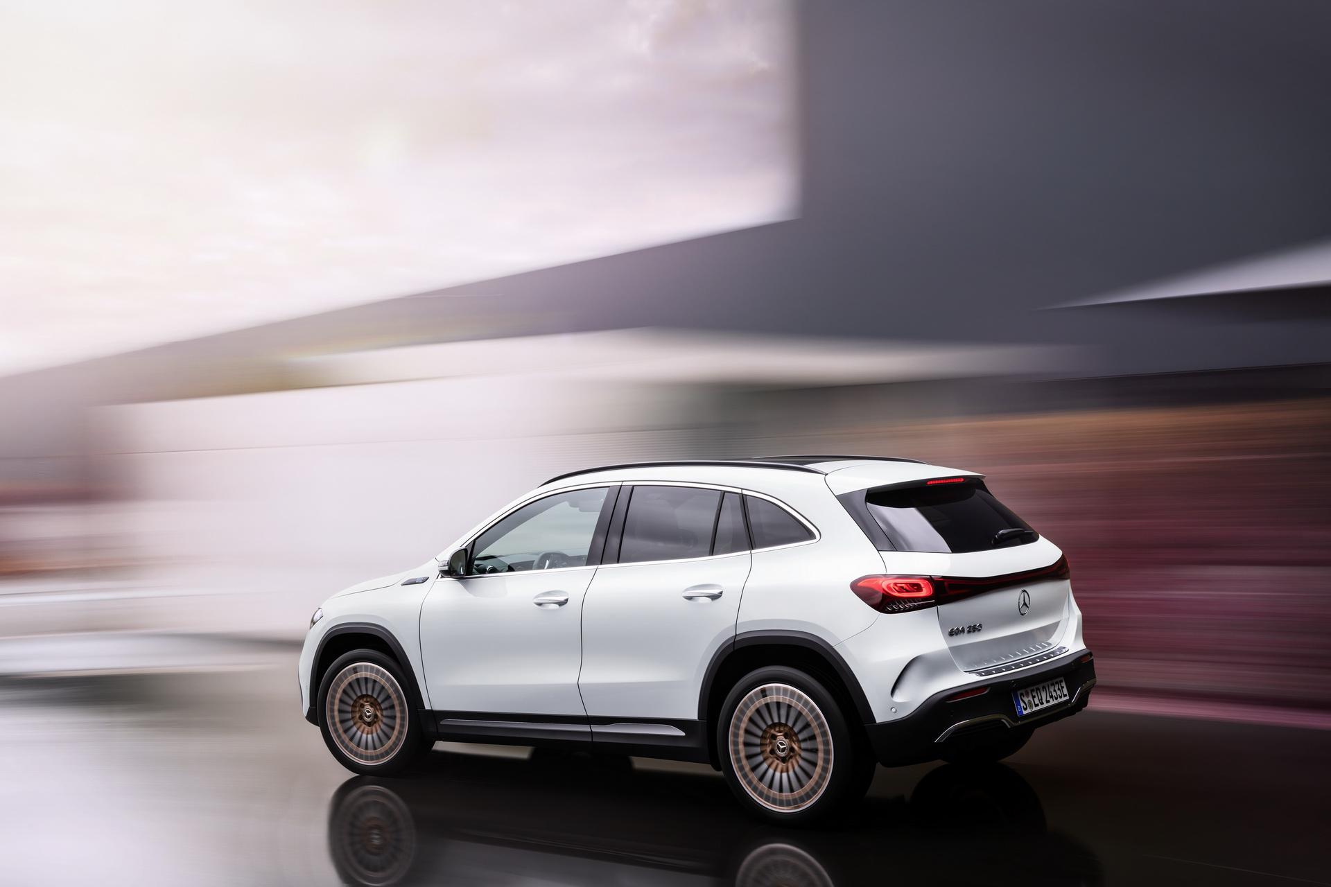 Cel mai mic membru de până acum al gamei electrice a mărcii germane se bazează pe modelul GLA. Versiunea de bază a vehiculului urban care poate fi folosit și ca mașină de excursii este propulsată de un motor electric cu o performanță de 190 CP, alimentat de o baterie litiu-ion cu capacitate de 66,5 kWh – autonomia depăşind 420 km. Cu acest motor, mașina accelerează în 8,9 secunde la 100 km/h, viteza maximă fiind de 160 km/h. La o stație rapidă, nivelul de încărcare poate ajunge în doar 30 minute la 80%. Cele două motoare electrice ale versiunii de vârf, care va sosi mai târziu, asigură o performanță totală de 286 CP și propulsează toate cele patru roți, iar autonomia depășește 500 km.