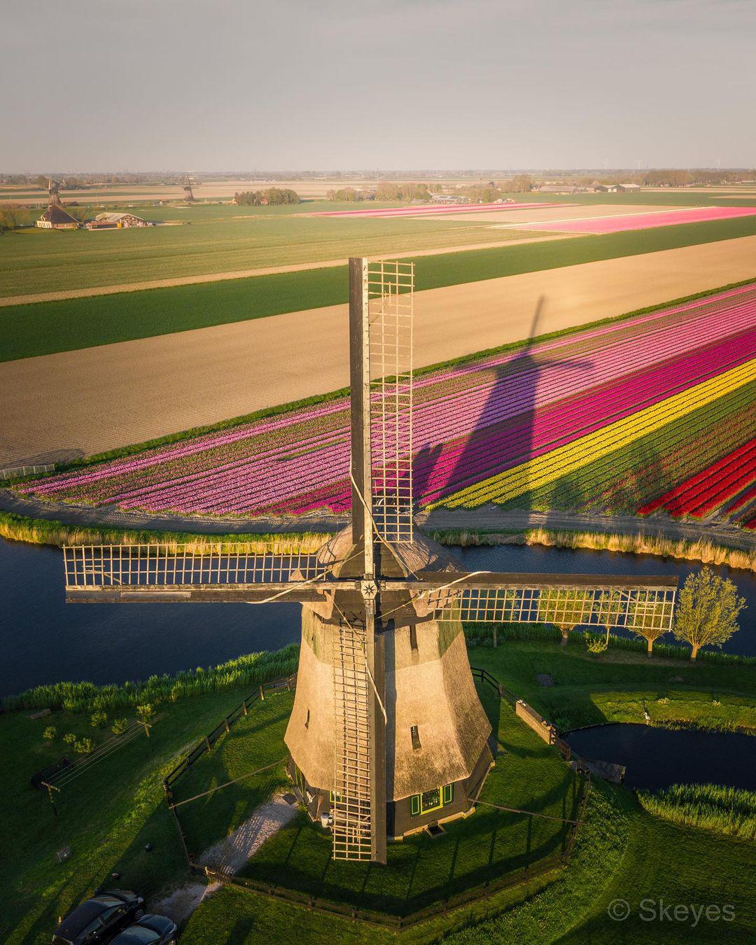 Născut la Haarlem în urmă cu 34 ani, Nick de Jonge are ca subiecte preferate morile de vânt din secolul al XVIII-lea, care fac parte din Patrimoniul Mondial UNESCO din 1997, dar își trimite cu plăcere drona și peste celălalt simbol al Olandei, câmpurile de lalele în culori vibrante. Sistemul de canale din Amsterdam este imortalizat în schimb mai ales de pe stativ.