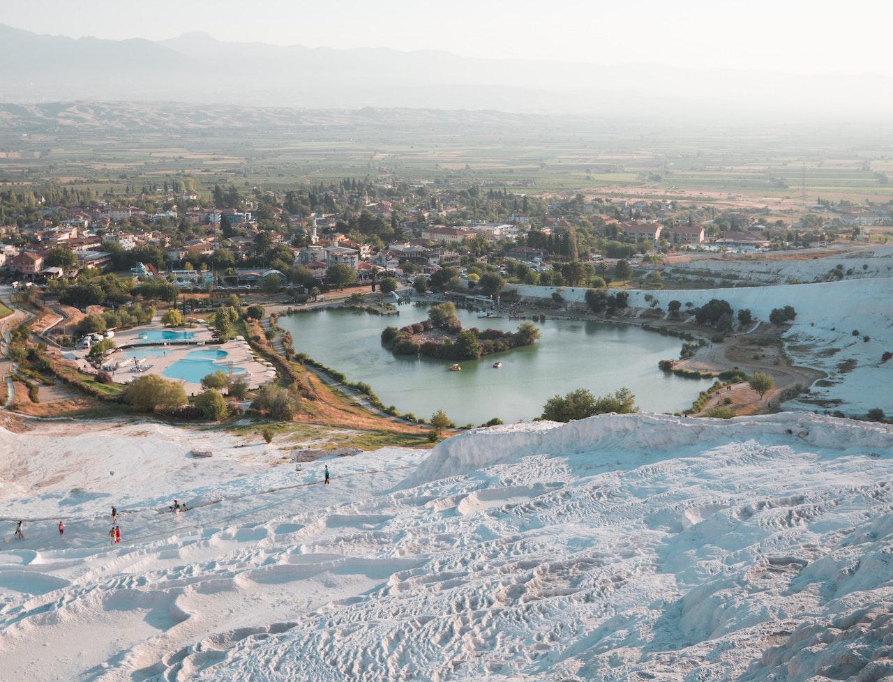 Pamukkale se găsește lângă orașul antic Hierapolis. Bazinele termale fac parte din Patrimoniul Mondial UNESCO și sunt una dintre cele mai populare atracții din Turcia, fiind vizitate anual de 3 milioane de turiști.
