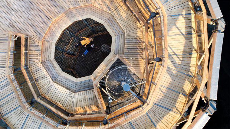 Turnul poate găzdui maxim 492 de persoane în același timp. Pe lângă panorama uluitoare, vizitatorii mai sunt așteptați de un tobogan încorporat cu o lungime de 61 metri, un restaurant, precum și o plasă pietonală și un pod din sticlă pe acoperiș.
