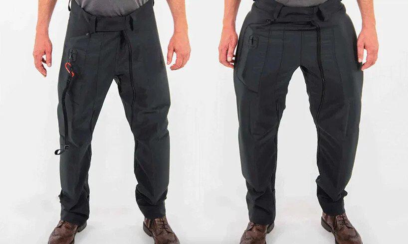 Realizați după trei ani de dezvoltare, pantalonii proiectați de CX Air Dynamics integrează un sistem airbag care servește la protejarea membrelor inferioare în cazul în care cădem de pe motocicletă. Airbag-ul este echipat cu un cartuș de aer sub presiune şi este conectat de motocicletă printr-un cablu care declanşează și umflă airbag-ul în momentul accidentului.