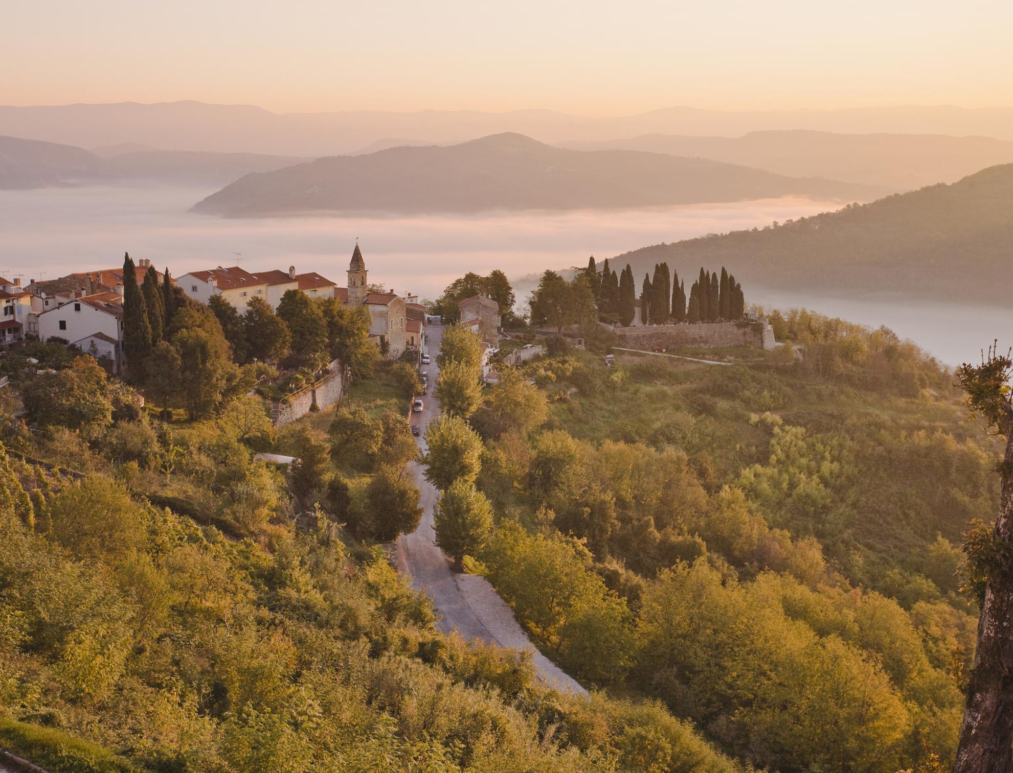 Istria nu înseamnă doar orașele bine cunoscute de coastă - și în interiorul peninsulei dealurile verzi sunt colorate de orășele drăguțe. Merită vizitate mai multe dintre ele, deoarece aici putem cunoaște o față cu totul diferită a regiunii – sunt locuri în care s-au mutat artiști, sunt locuri în care străzile antice au rămas liniștite, în timp ce în altă parte agitația joacă rolul principal. „Cel mai mic oraș din lume" – astfel este numit orașul Hum, micuța localitate din Peninsula Istria. Are doar 30 de locuitori, și dacă avem noroc, atunci sunt la fel de puțini turiști. Cele două străzi scurte pot fi explorate printr-o plimbare confortabilă de numai 10 minute, dar să nu ne grăbim - casele antice și biserica Sfântul Ieronim din piața centrală au o atmosferă fermecătoare.
