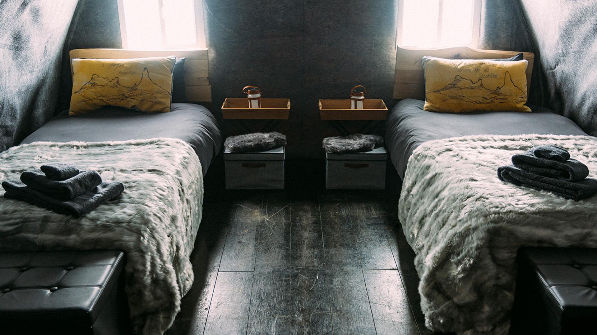 Cele șase corturi încălzite prin panouri solare au vedere la muntele Wolf Fang’s, înalt de 915 metri. Corturile confortabile sunt dotate cu băi private și cuverturi din blană artificială, iar mesele sunt personalizate pentru fiecare oaspete.
