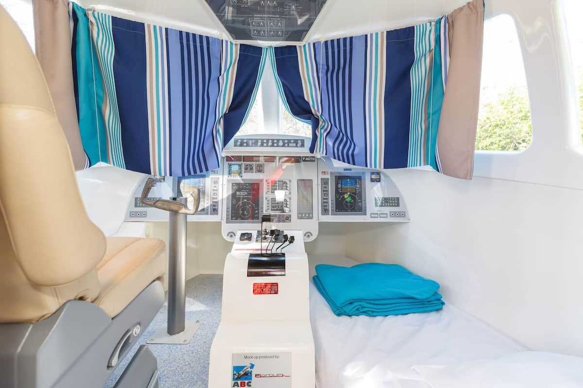 Cu siguranță cu toții am dormit de multe ori într-un avion, dar nu pe un „camper" transformat dintr-un avion mic! Această cazare din Saint-Michel-Chef-Chef (Franța) este un apartament utilat complet, la fel ca o rulotă, numai că nu se mișcă din loc. Prețul unei nopți este de 108 dolari.