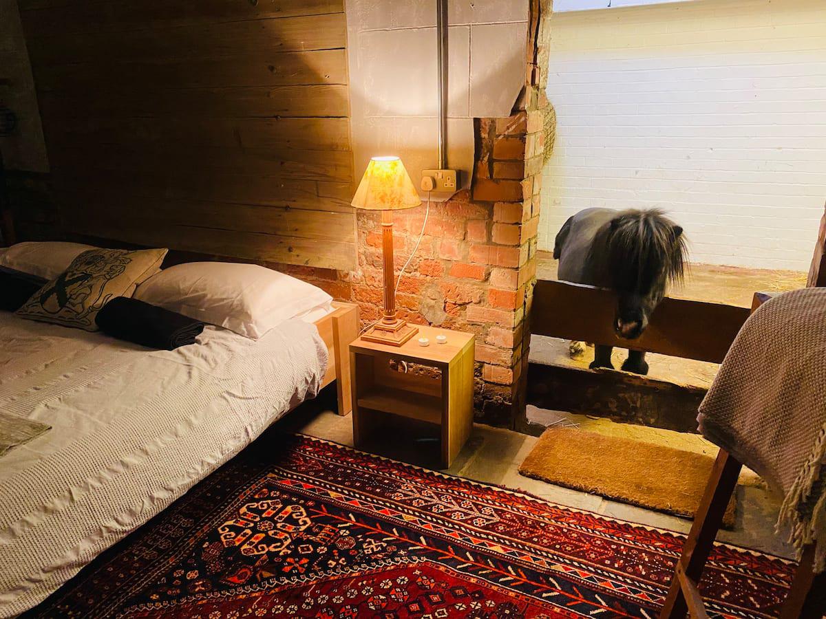 A fost foarte la modă în ultimii 10 ani transformarea hambarelor în cabane sau căsuțe, dar... cu animale în interior? Această cazare Airbnb este destinată exclusiv marilor iubitori de animale, deoarece trebuie să împărțim hambarul frumos convertit cu Basil, un mini ponei de 10 ani. Ciudata cazare aflată la o fermă din Nottinghamshire are 4 locuri și este recomandată mai ales familiilor cu copii mici, ai căror părinți vor să le arate frumusețile vieții rurale. O noapte de cazare costă 200 de dolari.