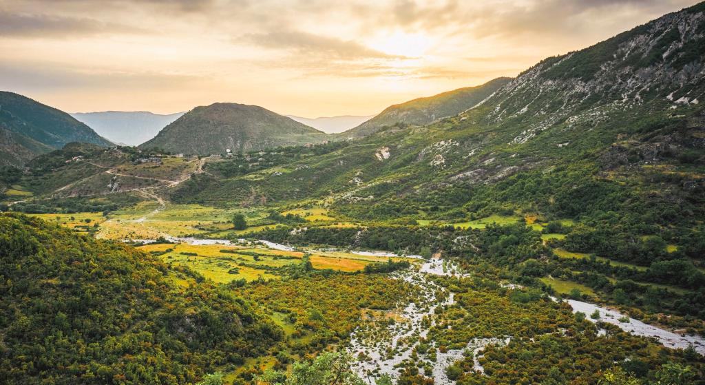 Nu este exagerat: Albania se poate mândri cu atracții pentru un întreg continent. După orașele istorice și zona de vacanță de pe litoral, la sfârșitul călătoriei noastre ne îndreptăm din nou către un altfel de teren. În peisajul fermecător al Alpilor Albanezi, drumul șerpuiește între pini străvechi, pajiști alpine și stânci albe, în timp ce am prefera să ne oprim la fiecare cotitură pentru a face fotografii. În urmă cu un an sau doi era destul de greu să ajungem aici, dar construcția drumului asfaltat până la micul sat Theth din adâncul parcului național a fost finalizată, așa că nu este loc de obiecții – cine suportă serpentinele, poate porni liniștit la drum. Peisajul este superb, cascade și lacuri colorate se ascund printre vârfurile munților, dar la această înălțime este cu câteva grade mai răcoare decât pe plajă, așa că este indicat să avem la noi un pulover sau o jachetă.