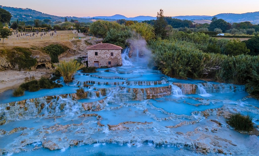 Băile de calcar din Saturnia, în Toscana, sunt unele dintre cele mai cunoscute băi termale naturale din toată Italia, fiind folosite încă din antichitate. Apele sale bogate în sulf relaxează garantat vizitatorii, iar cele mai populare părți sunt în mod clar cele alimentate de cascada Cascate del Mulino.