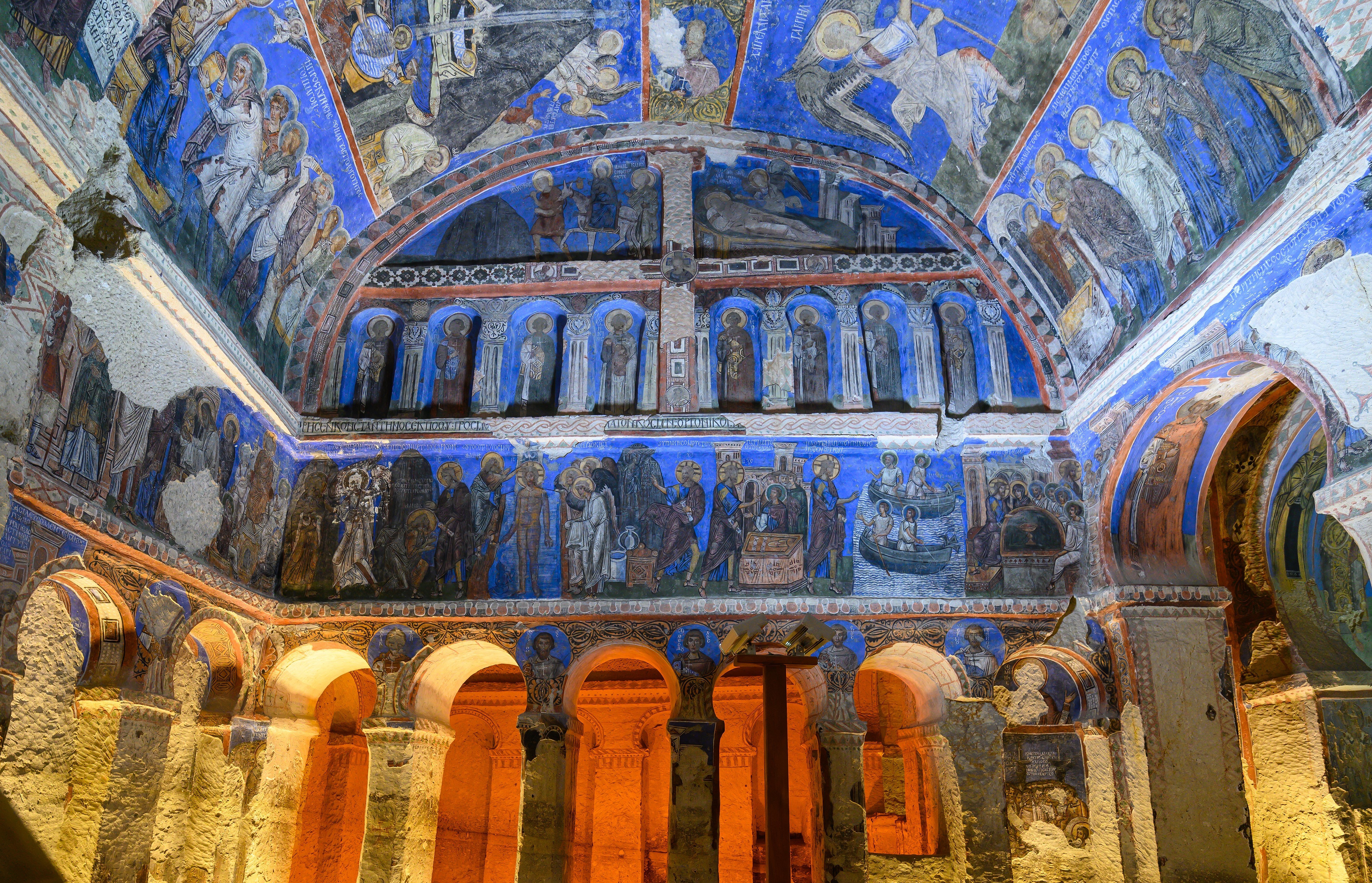În regiunea estică a Cappadociei, în Turcia, există un sit istoric la aproape fiecare pas. Göreme, un oraș din Parcul Național Göreme, renumit pentru formațiunile sale stâncoase, se poate mândri cu o serie de temple și mănăstiri antice și medievale. Picturile viu colorate de pe clădiri, dintre care multe sunt sculptate în stânci, au, de asemenea, o valoare artistică considerabilă. Una dintre aceste mari biserici este Tokalı Kilise, de culoare albastră, construită în secolul al XI-lea. Merită admirate și picturile murale bizantine din Karanlık Kilise, cunoscută și sub numele de "biserica întunecată".