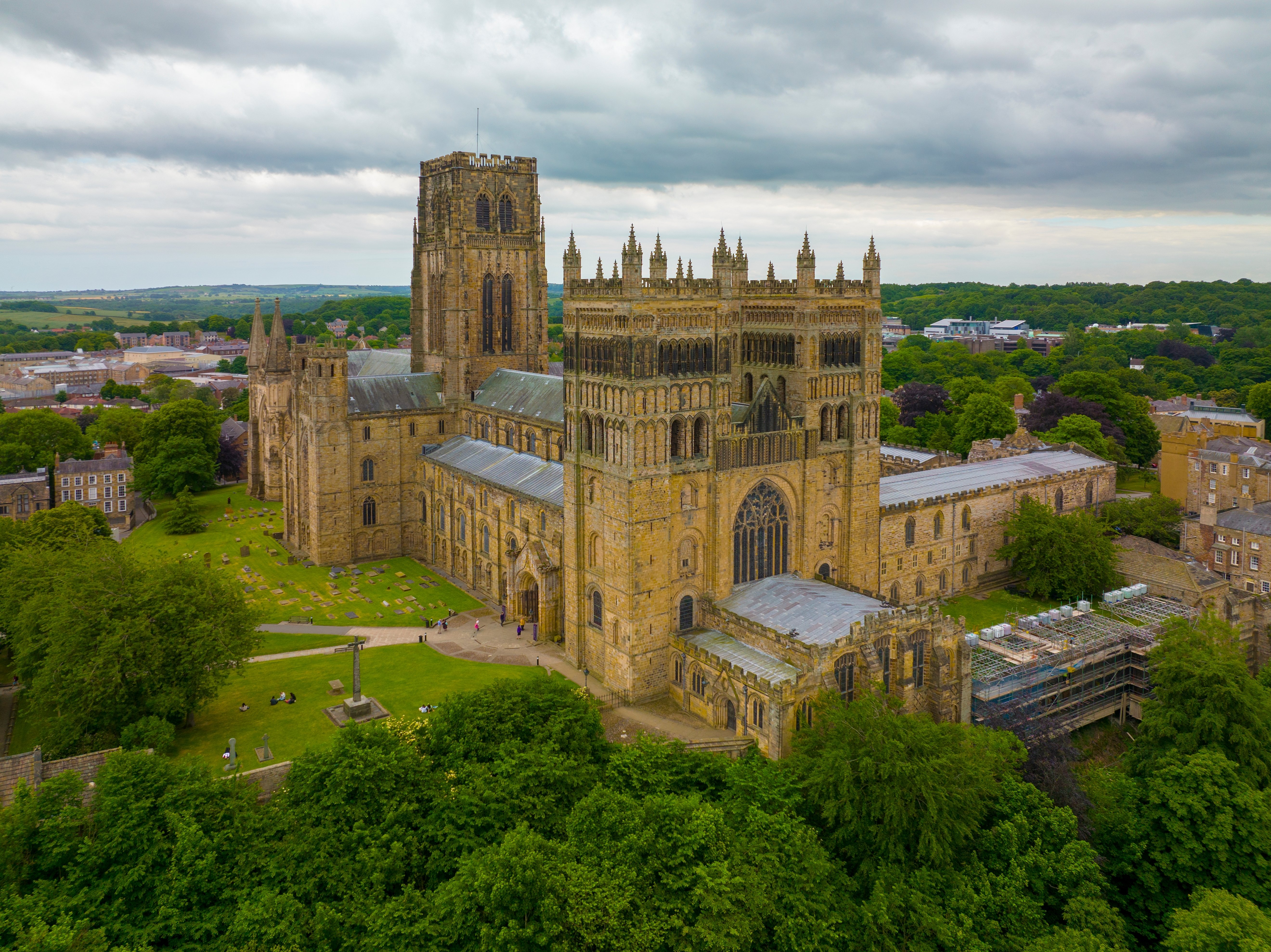 Catedrala, construită între secolele al XI-lea și al XIII-lea, este unul dintre cele mai importante repere din Durham, în nordul Angliei, în apropiere de granița cu Scoția, și a fost descrisă de scriitorul Walter Scott din secolul al XIX-lea ca fiind "jumătate casă a lui Dumnezeu, jumătate fortăreață împotriva scoțienilor". Clădirea monumentală, inclusă în Patrimoniul Mondial UNESCO, este o capodoperă a arhitecturii romanice normandă, iar tavanul naosului este unul dintre cele mai vechi exemple de boltă în arc ascuțit care au rezistat în timp.