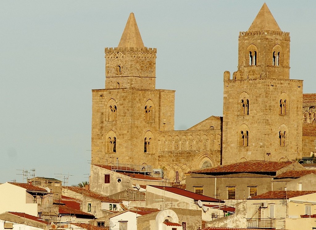 Arhitectura normandă poate fi întâlnită și în Italia, în special în Sicilia, de pildă în Catedrala din Cefalù, în nordul insulei. Fațada principală a clădirii din secolul al XII-lea, care este decorată și cu motive arabe, este flancată de două turnuri cu patru etaje. Cu toate acestea, ușa ornamentată din marmură, una dintre cele mai frumoase părți ale bisericii, a fost finalizată abia peste mai bine de trei secole mai târziu. În interiorul catedralei, deasupra absidei semicirculare, mozaicuri aurii înfățișează figuri creștine, dintre care cea mai impresionantă este cea a lui Hristos.