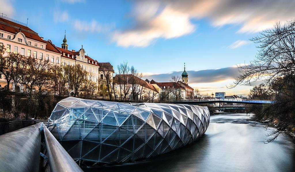 Capitala provinciei Stiria, un sit al Patrimoniului Mondial UNESCO, se poate mândri cu titlurile de Capitală Culturală Europeană în 2003 și Orașul Experiențelor Culinare în 2008. Majoritatea semnificativă a moștenirii arhitecturale, de la Renaștere prin baroc până la Art Nouveau, se găsește în orașul vechi, în special în jurul dealului cetății. După explorarea lor, după ce am învățat din maiestuosul trecut istoric, să vizităm Kunsthaus Graz pentru puțină artă futuristă. Galeria și-a găsit loc într-o clădire numită doar „străinul prietenos”, a cărei formă ondulată extravagant și solzoasă a devenit o parte integrantă a peisajului de pe malul râului Mur.