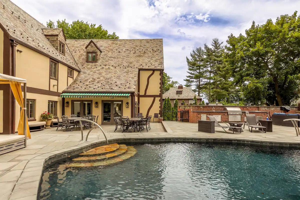 Oaspeții norocoși vor avea acces deplin la reședință, care include nu mai puțin de cinci dormitoare și șapte băi. De asemenea, proprietatea dispune de o piscină, un bar la subsol pentru cocktailuri de seară, o sală de jocuri și o sală de sport.