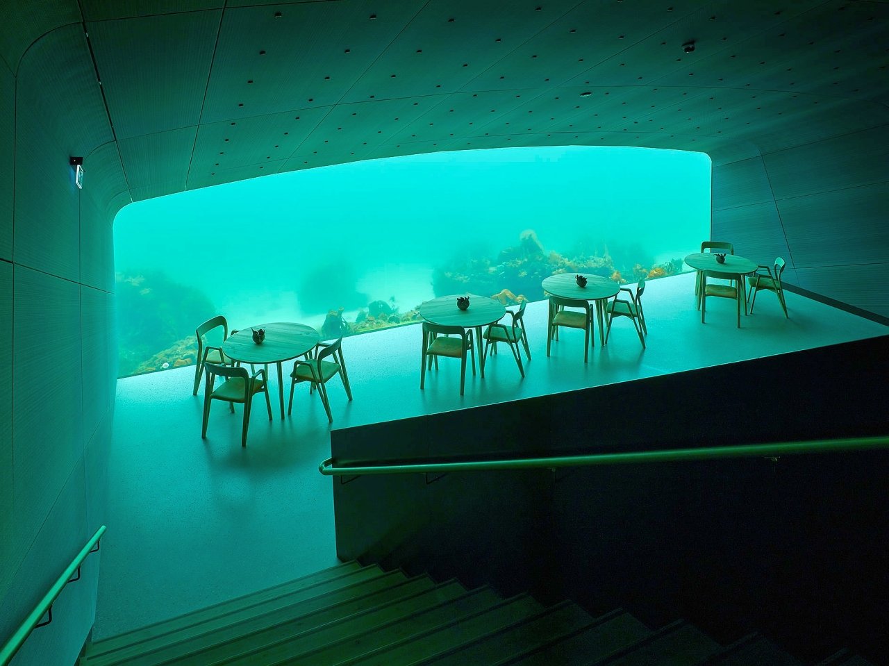 Un restaurant unic din Norvegia, Under, cu stele Michelin, nu este subteran, ci subacvatic, dar este la fel de interesant de vizitat. În restaurantul insolit al orașului Båly, poți lua masa la o adâncime de aproximativ 5,5 metri, în timp ce curenții din Marea Nordului și animalele care vin cu ei plutesc în jurul tău. Iar fundul mării se schimbă în funcție de anotimp, așa că vei vedea diferite priveliști în diferite perioade ale anului.