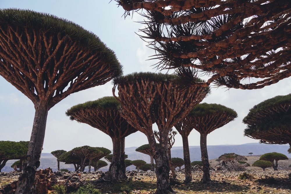 Aflați pe arhipelagul Socotra din Yemen, acești arbori străvechi au mii de ani vechime și sunt numiți "Arborele cu sânge de dragon", deoarece trunchiul plantei produce o sevă roșiatică. Copacii oferă o priveliște extraordinară, dar cum întreaga floră și faună a arhipelagului din Oceanul Indian este unică, există multe alte atracții speciale care trebuie descoperite.
