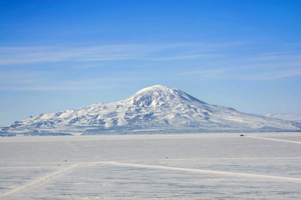 La 3.794 de metri, Muntele Erebus este al doilea vulcan ca înălțime din Antarctica și este, de asemenea, activ, cu un crater imens. Este unul dintre cele mai reci locuri de pe Pământ, așa că, atunci când vulcanul erupe aici, gheața se întâlnește cu lava fierbinte, iar frigul face ca roca lichidă să se solidifice rapid.