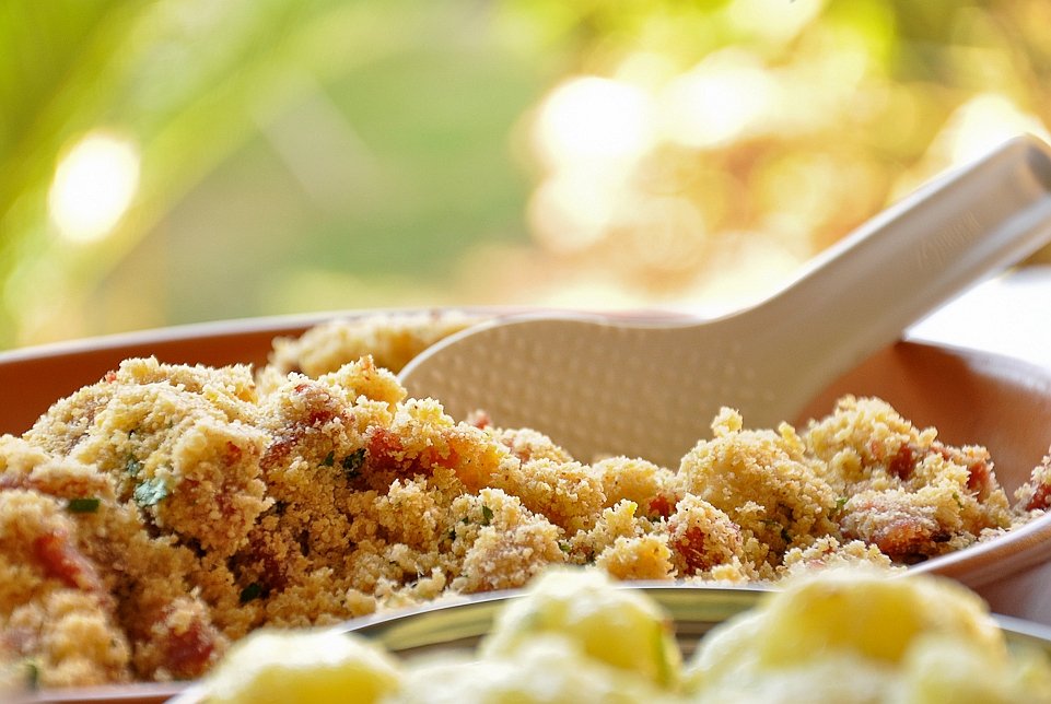 Farofa este de departe unul dintre cele mai populare feluri de mâncare braziliene de Crăciun, cu un amestec de ceapă prăjită în unt, combinat cu banane și carne (de deiverse feluri, cum ar fi șuncă, cârnați sau carne de vită) asezonat cu ardei, alune și stafide, apoi acoperit cu făină de tapioca prăjită.