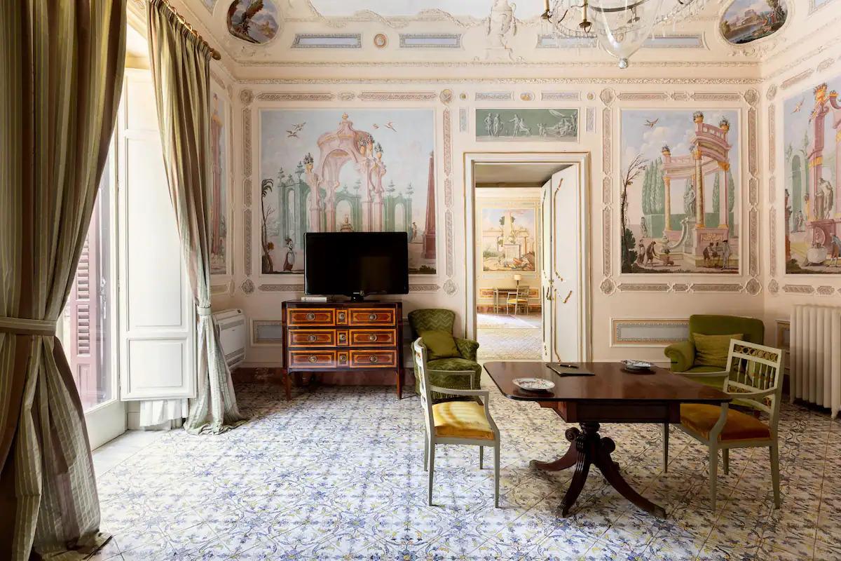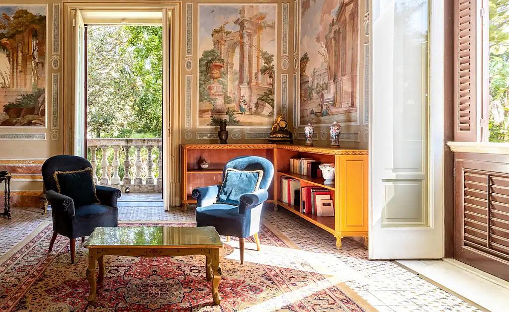 Iazul parcului servește drept piscină naturală, iar cei maxim opt oaspeți sunt așteptați de patru dormitoare și cinci băi. În interior găsim fresce ornamentale, podele de piatră, o scară dublă impunătoare și candelabre din sticlă Murano, precum și o mulțime de antichități și picturi cu rame aurii frumos iluminate de ferestrele gigantice prin care intră lumina naturală mediteraneană. Cât despre distracție - în clădirea renascentistă există o sală de biliard, un bar și o sală de muzică. Un personal format din șase persoane se ocupă de confortul oaspeților, dar contra unui cost suplimentar le poate sta la dispoziție și un bucătar.