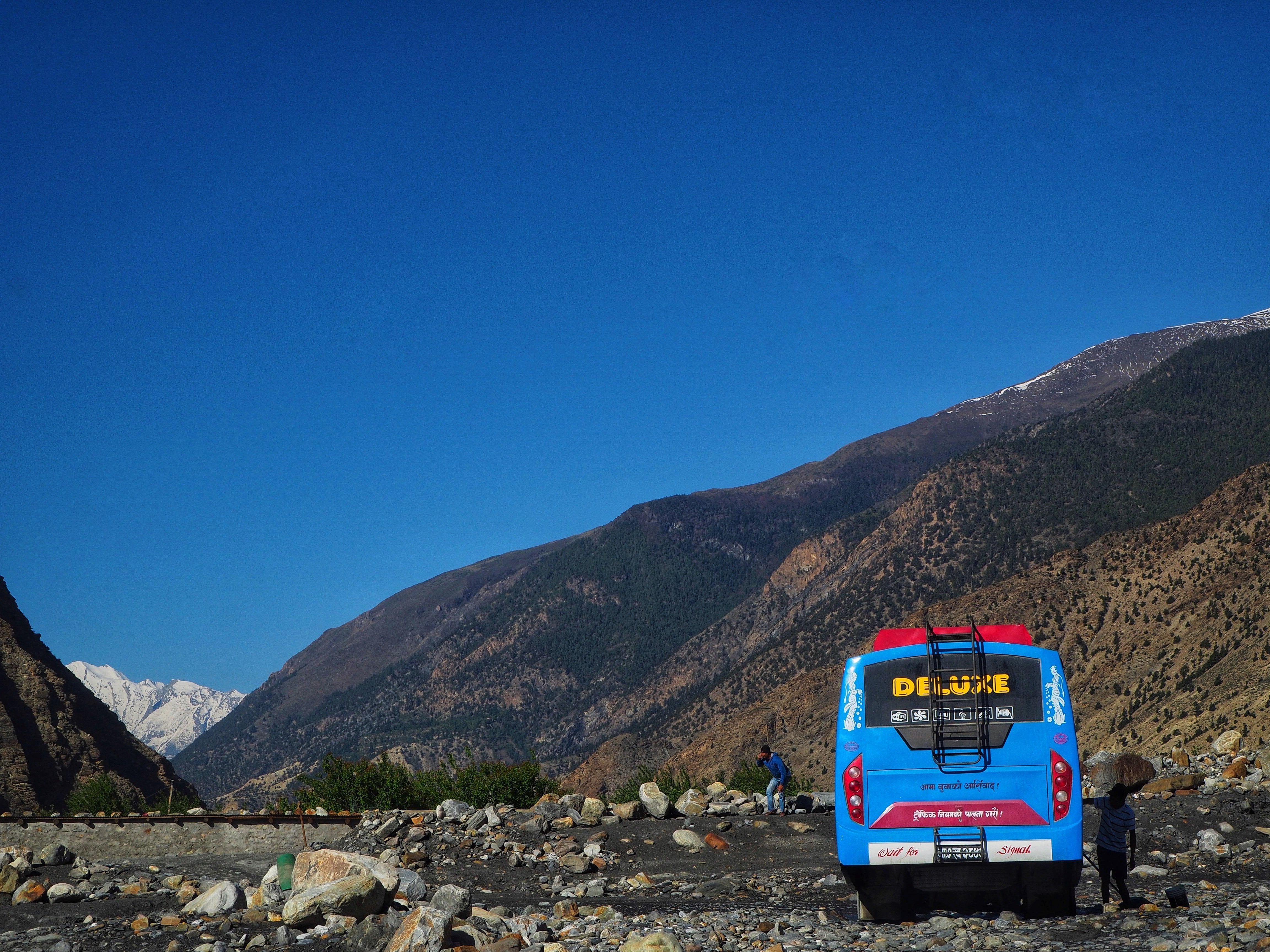 Circulația auto în această țară din Himalaya este precară, ploile din timpul musonului făcând multe drumuri impracticabile. Sistemul de transport public din Nepal este puternic centrat pe capitală, Ratna Park din Kathmandu fiind un hub central pentru autobuze și microbuze. Ca alternativă, pot fi utilizate ricșele cu motor (cunoscute la nivel local sub numele de tuk-tuk), în timp ce în Valea Kathmandu se poate ajunge cu autobuzele pe distanțe lungi.