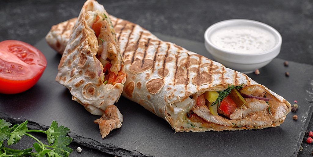 Se prăjeşte ceapa şi usturoiul. Pieptul de pui se taie în felii subţiri sau cuburi şi se adaugă la ceapă. Se aromatizează (sare, piper, nucşoară, curry, sos Worchestershire) şi se fierbe, iar în final se prăjeşte uşor. Smântâna se amestecă cu condimente verzi (pătrunjel, arpagic, busuioc), muştar, sare, piper, miere şi cu 2 căţei de usturoi. Legumele se spală şi se taie în bucăţi mici. Înainte de servire, aluatul de tip wrap se umple după gust cu carne, legume şi sos.