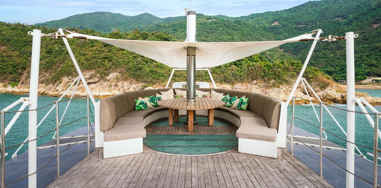 Bár egykoron személyszállító komphajó volt Hong Kong-ban, a Dot ma már háromszintes luxusjacht, 557 négyzetméteres hasznos felülettel. A 47 méter hosszú, teljesen légkondicionált vízi járműben négy hálószobát alakítottak ki (mindegyikhez saját fürdőszoba tartozik), de a hajón óriási panorámaablakokkal ellátott konyha is helyet kapott, a tetőn pedig árnyékos pihenőrészleg és napozóhely várja az utasokat. Nem hiányzik belőle a házi mozi sem, az óriási nappaliban pedig a város legnagyobb kanapéja trónol, karácsonykor pedig akár egy négyméteres fenyőt is fel lehet állítani benne – legalábbis ezzel hirdeti a hajót a luxusjachtok értékesítésére szakosodott Ocean Independence, amely 2,7 millió dolláros áron dobta piacra az úszó villát.