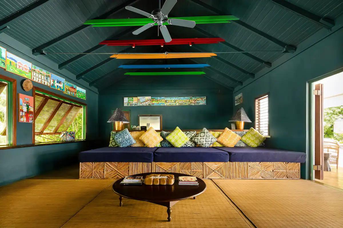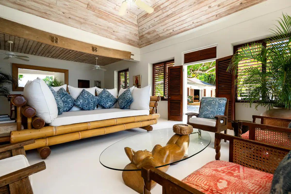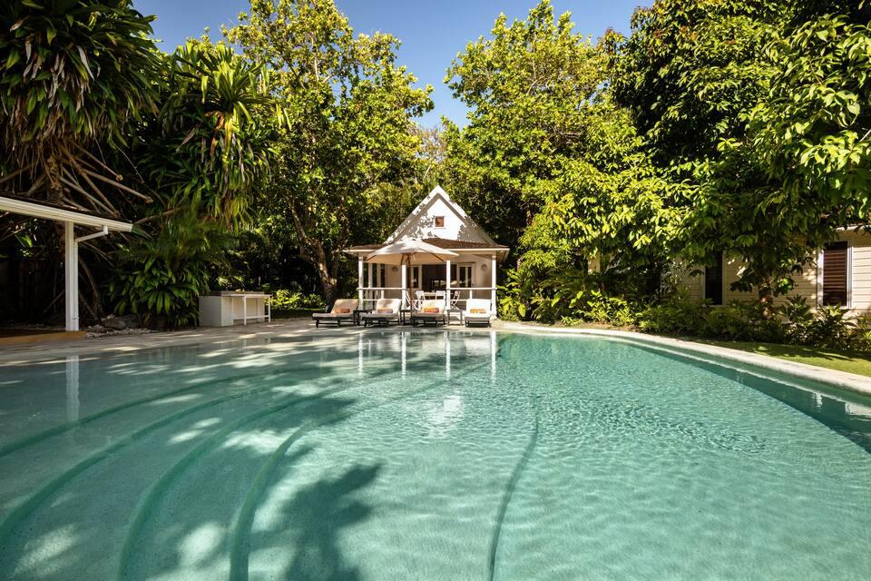 A ház három épületben öt hálószobával rendelkezik, köztük három a főépületben található. A medence melletti házban külön hálószoba van, saját king size méretű kétszemélyes ággyal, valamint kültéri esőzuhany és terasz is rendelkezésre áll. A kikapcsolódási lehetőségeket teniszpálya és jógastúdió szolgálja, míg az üdülőközpont vízi sporteszközein felfedezhetjük a lenyűgöző környéket. A villának külön komornyikja és szakácsa is van, aki akár a legtöbb 12 fő szabadtéri vacsoráját is elkészítheti.