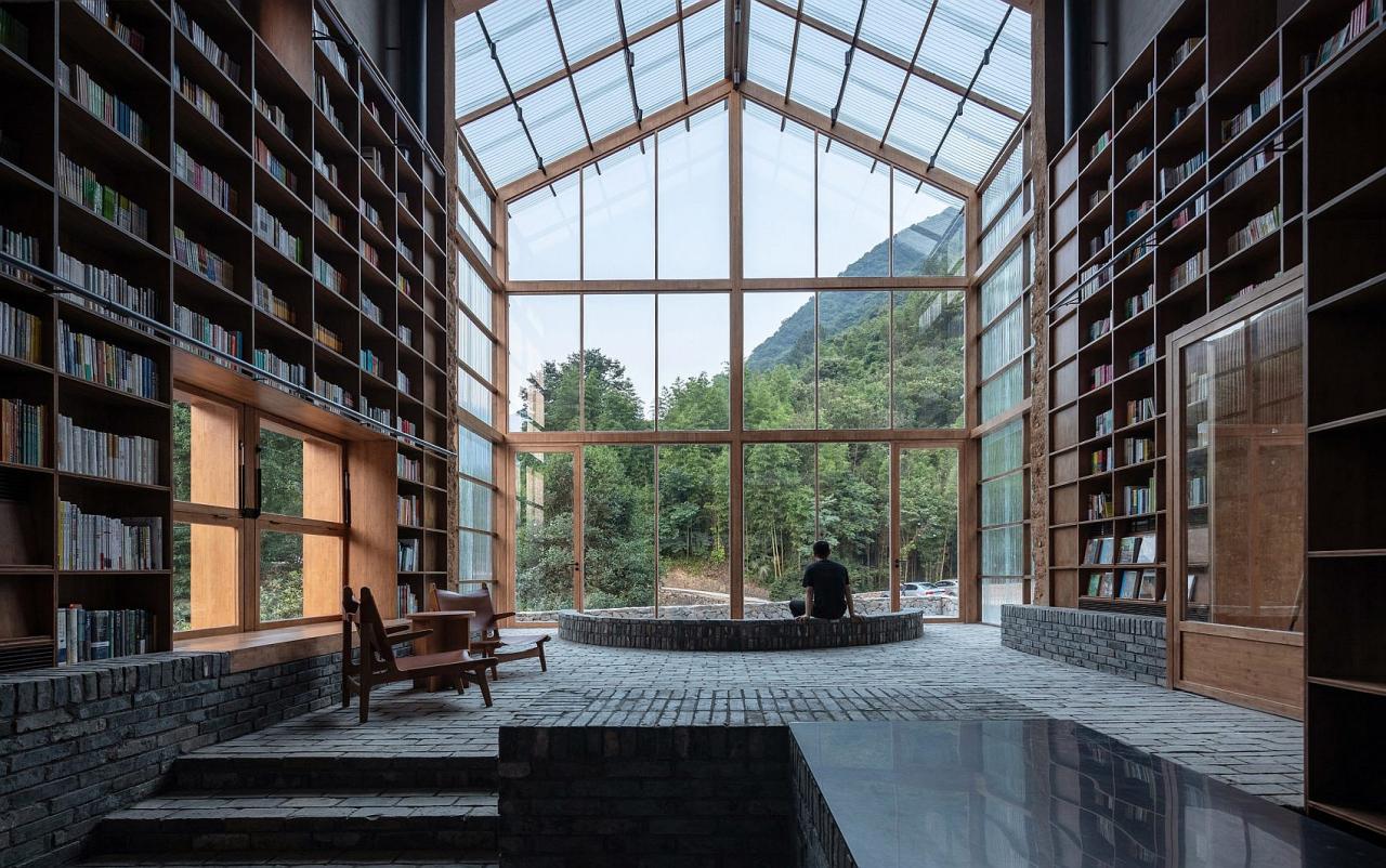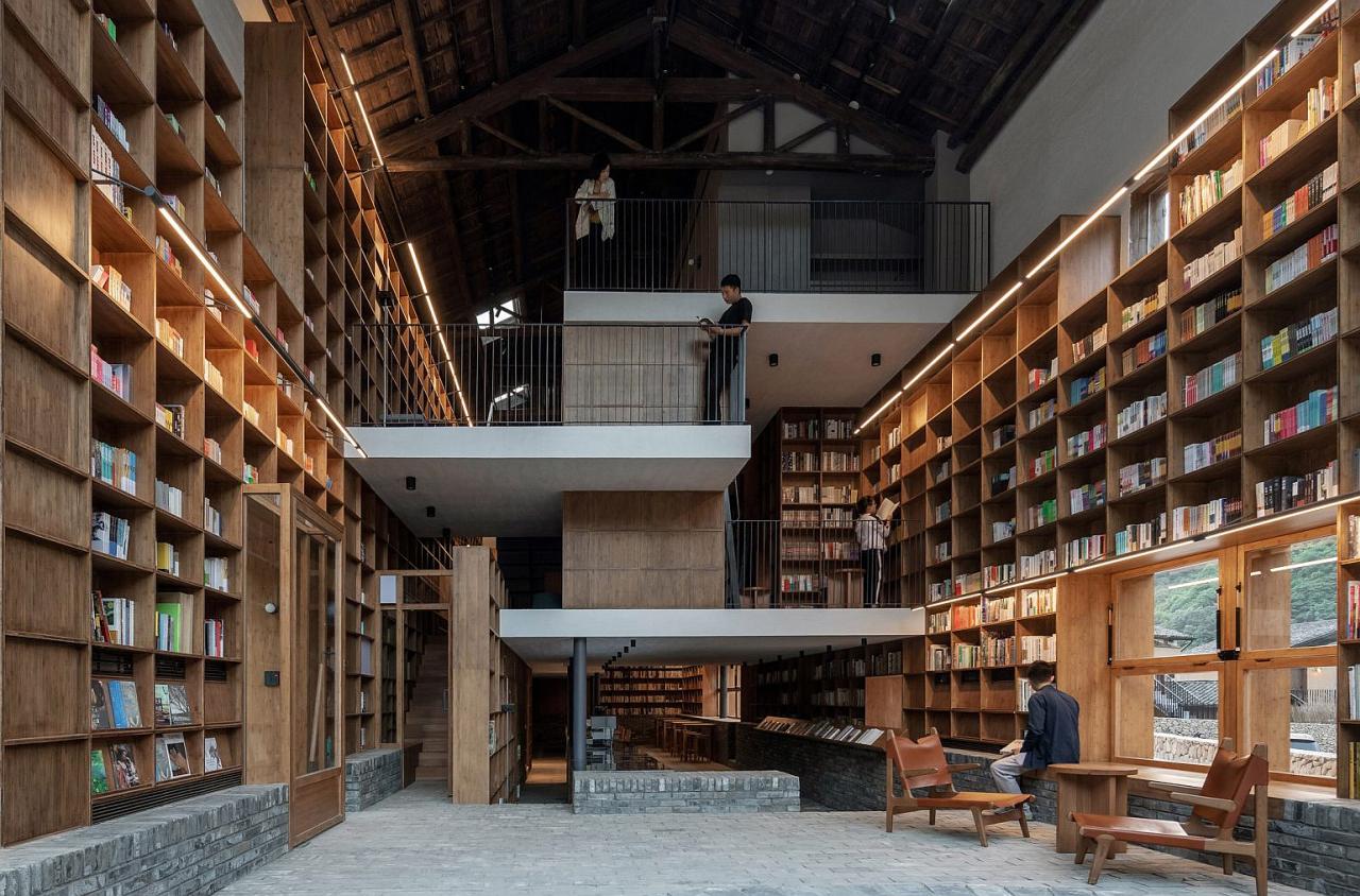 A Csöcsiang (Zhejiang) tartomány sűrű erdeiben megbúvó Kinglongvu (Qinglongwu) sokáig egyszerű falunak számított, mára mégis nemzetközi ismertségnek örvend. Egy befektető ugyanis megvásárolta a helyi vezető korábbi lakhelyét, majd felkérte a sanghaji Tao+C építészeti irodát, hogy a fából, vályogból és agyagból épített házat alakítsa át egy könyvtár egy könyvesbolt és egy hostel különleges ötvözetévé. A Hotel Capsule névre keresztelt hibrid építmény bambuszból készült, masszív polcain közel 30 ezer kötet sorakozik, míg mögöttük 20 aprócska kapszulaszoba rejtőzködik.