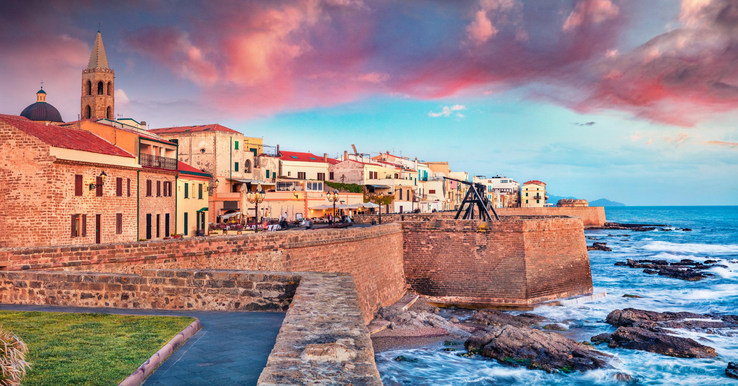 Szardínia legizgalmasabb városa a csaknem ezeréves városfallal körülvett Alghero. A sziget északnyugati részén fekvő település lakosságának jelentős része katalán származású. Az egykori spanyol-katalán uralmat idézi az óváros épületeinek stílusa, a mintás térkövekkel kirakott utcákon sétálva úgy érezhetjük magunkat, mintha Katalóniában lennénk.