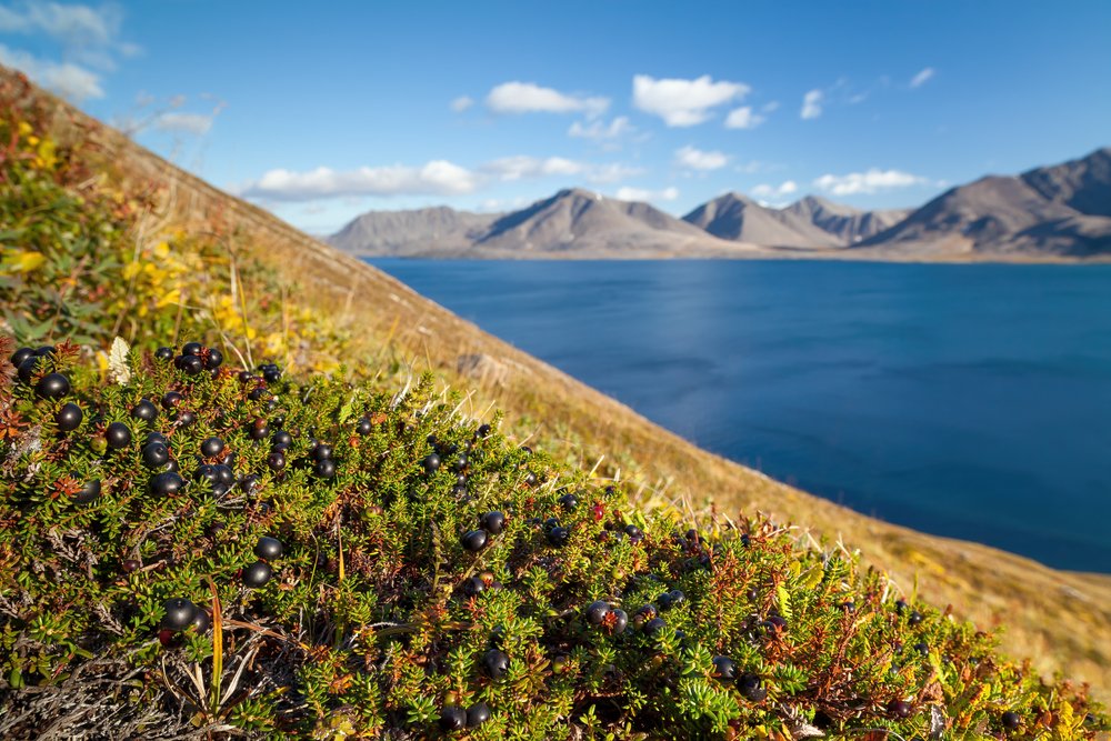 A szélsőséges grönlandi időjárásban csak nagyon kevés növény él meg, így a gyümölcs- és zöldségválaszték jóval szegényesebb, mint a melegebb éghajlatú országokban. Vad bogyósgyümölcsök azonban bőségesen akadnak, amelyekből lekvárt készítenek vagy a halas fogásoknál használnak fel.