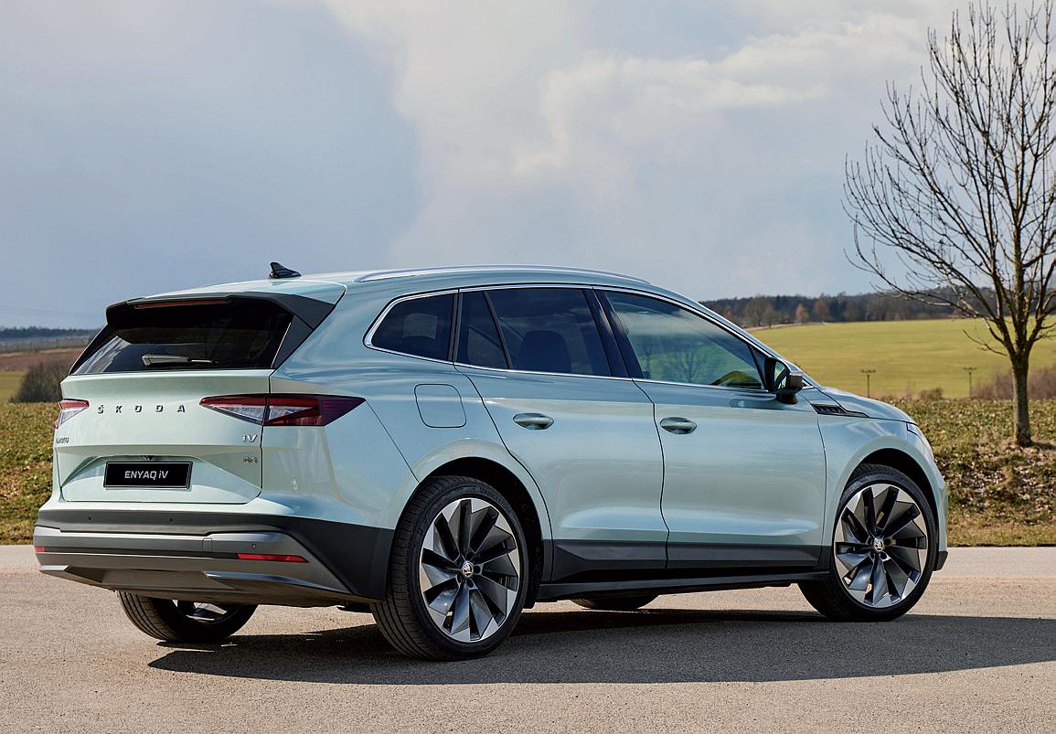Az Enyaq tagadhatatlanul Škoda, másrészt teljesen hagyományos autónak tűnik, nem kérkedik feleslegesen elektromos mivoltával. Ha a vevő mégis szeretné ezt tenni, a magasabb felszereltséggel bíró modellek – felár ellenében – világító hűtőmaszkkal is kaphatók. Ám az, hogy a dizájnja nem annyira futurisztikus, mint a piacon lévő elektromos autók többségéé, nem jelenti azt, hogy nem tetszetős. Rövid első és hosszú hátsó túlnyúlás teszi arányossá a formát, a finoman lejtő tetőív pedig plusz dinamikát csempész a SUV-ok és a kombik között félúton lévő crossover megjelenésébe. Furcsamód a legnagyobb, 21 colos keréktárcsák sem hatnak magamutogatónak, jól illeszkednek a formavilágba. Alapáron 19 colos felnik járnak – azok sem kicsik...