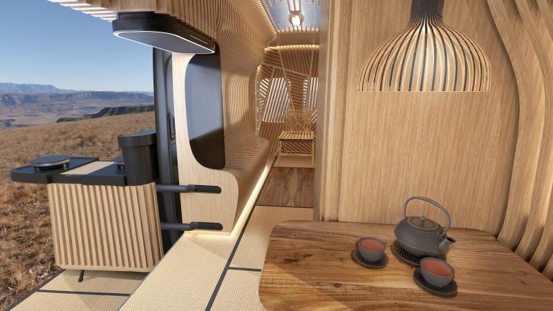 Az Alpine Cross Cabin tanulmány a digitális nomádok számára átalakított Ford Transit furgon.