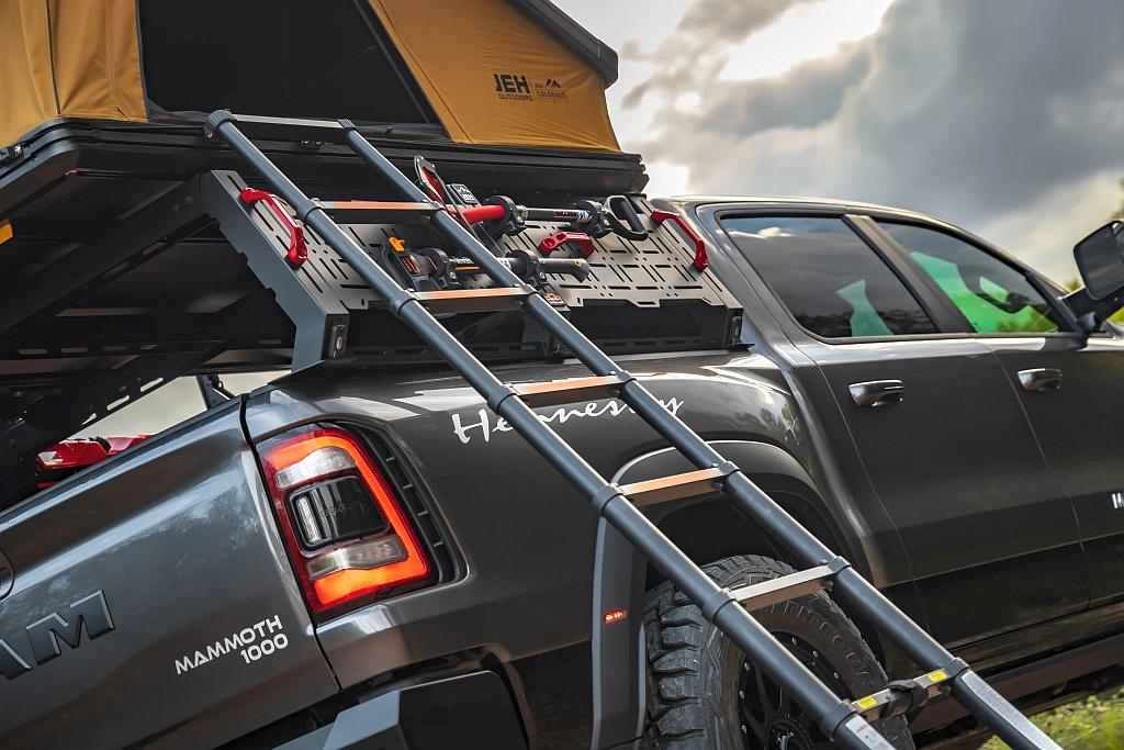 A lehajtható létrán elérhető tetősátor egy speciális állványon kapott helyet. Az alatta található készlethez számos kempingeszköz és -szerszám tartozik, valamint víztartály és kiegészítő üzemanyagtartály is. A tuningcég emellett a hasmagasság emelésével, 37 colos terepgumikkal és különböző védőelemekkel a négykerekű off-road képességein is javított.