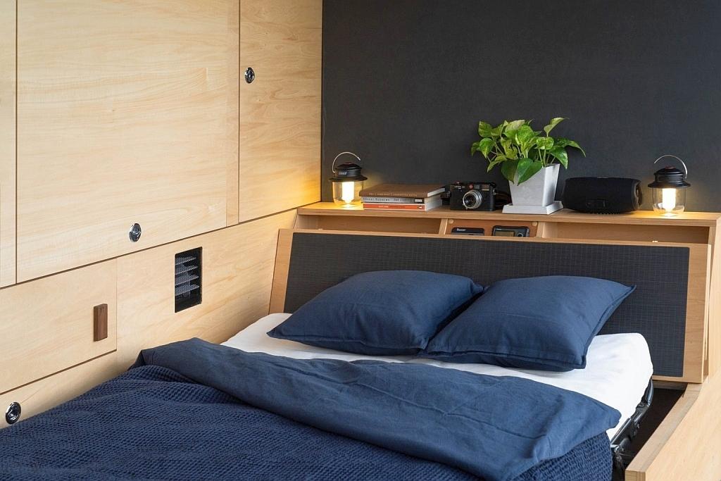 Bár a belső tér kompakt, az oldalfal egy gombnyomással felnyílik, így egyből a természetben találjuk magunkat, és semmihez sem hasonlítható irodai hangulatot kapunk. A Canter NOMADPro belső tere néhány mozdulattal irodából hálószobává alakítható át – a konyharész és a zuhanyzó azonban mindig rendelkezésre áll. A belső teret természetes anyagok és japán dizájnelemek uralják a bambuszpadlótól a tatami stílusú ülésekig.