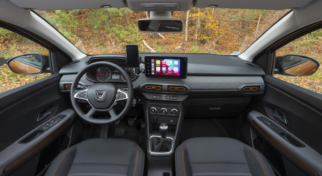 A minőségi váltás a belső térben is egyből érezhető – már nemcsak fekete vagy szürke műanyag elemeket találunk, de a bőr- és textilbetétek mellett a változatosabb színvilág is megjelent. Az okostelefonokat felismerő infotainment rendszer szinte tökéletes, a magasabb Comfort felszereltség (az alapváltozat Essential névre hallgat) esetén pedig a 8 hüvelykes érintőképernyőt is megkapta a Sandero Stepway. Sajnos a Dacia egyik gyenge pontja a márka erőlködése ellenére sem nagyon változott. Annak ellenére, hogy az új Sandero hat légzsákkal, vészhívóval, holttérfigyelővel és aktív vészfékező rendszerrel is rendelkezik, az Euro NCAP-teszteken csak két csillagot szerzett a lehetséges ötből.