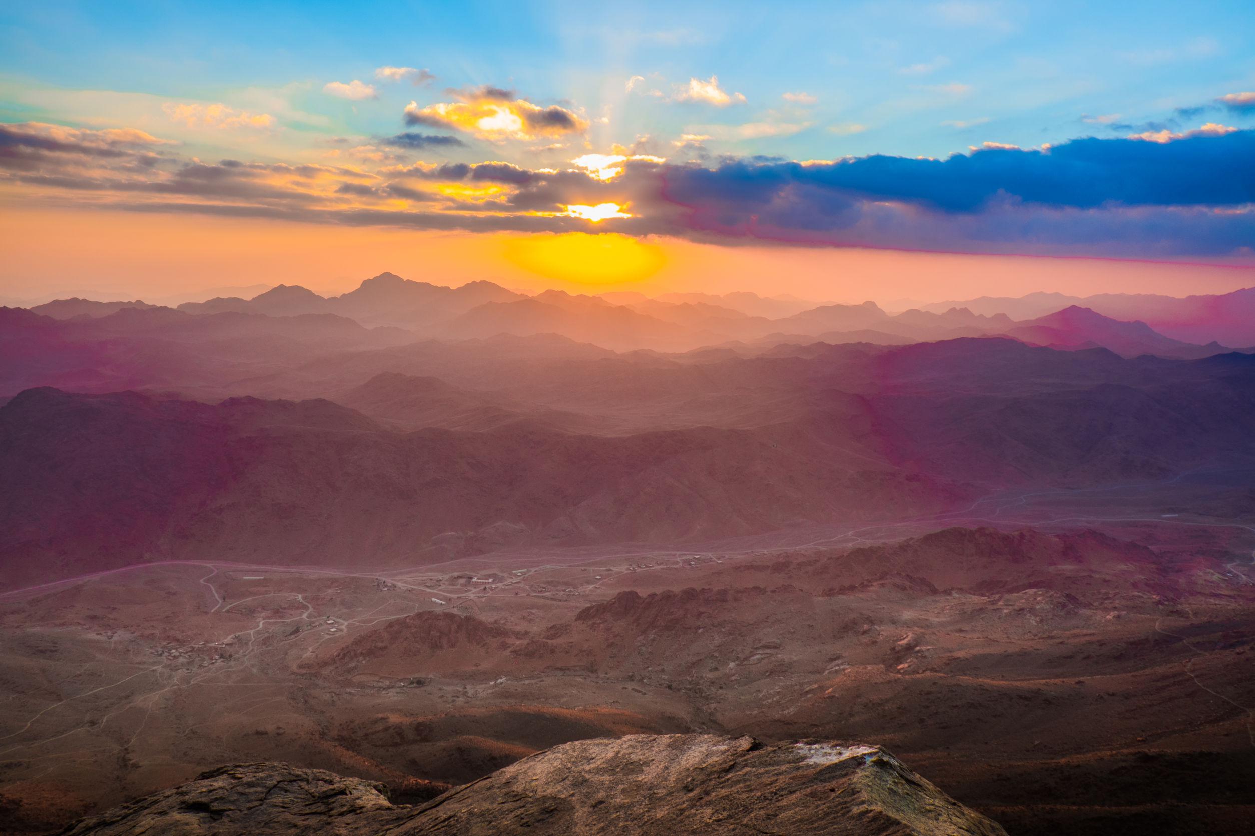 A bibliai zarándoklaton többféle útvonal közül választhatunk, a csapásokon megnézhetjük a 6. században épült Szent Katalin kolostort, vagy az Abbász pasa hegyén található oszmán vár romjait. A Sínai-hegyen (más néven Mózes-hegyen) sokan éjjel túráznak, hogy gyönyörködjenek a semmihez sem fogható napfelkeltében. A 2285 méter magas hegy, amúgy kezdő túrázónak sem nehéz terep.