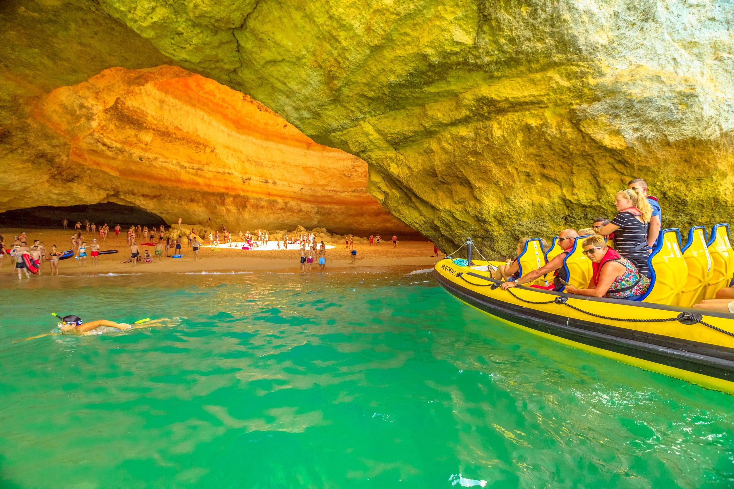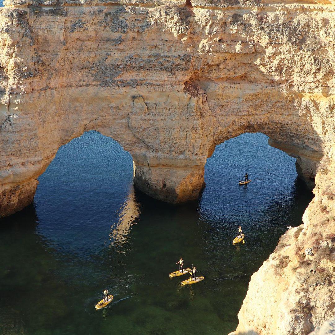 A rikító sárga mészkő sziklák szépen csipkézve kandikálnak ki a türkizkék óceánból, ám ha közelebb érünk, kiderül – ez a hely még annál is csodálatosabb, mint ahogy messziről tűnik. A Benagil különleges képződmény: egyszerre vagyunk barlangban és tengerparton, miközben a természetes kupola alá beszűrődik a napfény. A több, különböző méretű sziklakapu látványa felejthetetlen élmény!