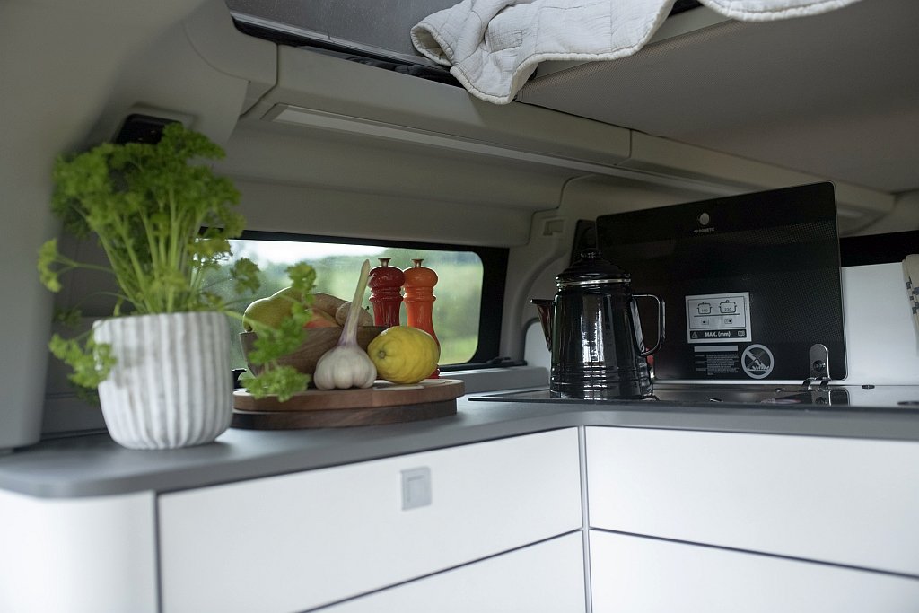 O bucătărie optimizată cu dispunere în formă de L face ca gătitul să fie mai plăcut, iar noul frigider este suficient de mare pentru ca sticlele să încape în poziție verticală. Combinat cu noua plită integrată și cu noua chiuvetă - acum cu apă caldă standard - designul suprafeței de lucru oferă cu 20% mai mult spațiu. O priză de duș rece/caldă montată în spate este acum standard, cu un cort opțional de confidențialitate pentru hayon. Experiența de camping este îmbunătățită și de noi locații de depozitare integrate pentru masa și scaunele de exterior standard, în timp ce jaluzelele cu rolete de tip blackout înlocuiesc perdelele pentru o intimitate sporită.