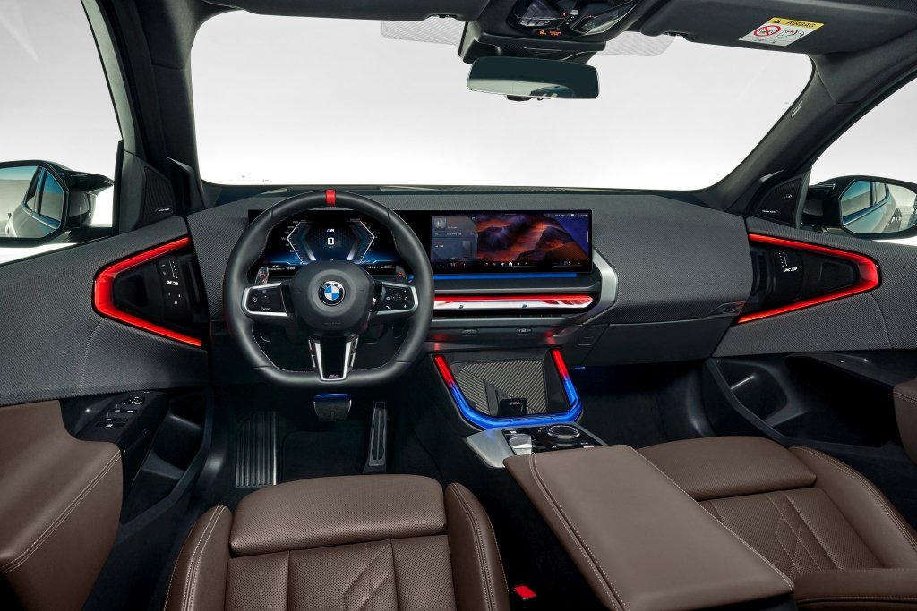 Interiorul vine cu o interpretare modernă a designului BMW X. Geometrie suprafeţelor are linii elegante cu suprafeţe omogene, cu ornamentele uşilor care se înfăşoară în jurul conducătorului şi al pasagerilor. Ecranul central curbat BMW este alcătuit dintr-un monitor de informaţii de 12,3 inchi (31,24 cm) şi display central de 14,9 inchi (37,85 cm). Interiorul este definit şi de BMW Interaction Bar, noi volane cu cadrul plat în partea inferioară, manetă nouă a selectorului de viteze. Panourile de control şi gurile de ventilaţie din partea frontală a panourilor uşilor sunt încadrate de elemente luminoase moderne într-o culoare contrastantă. Suporturi pentru pahare sunt integrate într-o zonă de depozitare nou interpretată, inclusiv cu funcţie de încărcare wireless în consola centrală. Scaune sport sunt reglabile electric, cu încălzire, climatizare automată în trei zone, geamuri acustice, Comfort Access, iluminare ambientală cu secvenţe Welcome & Goodbye sunt echipamente standard.