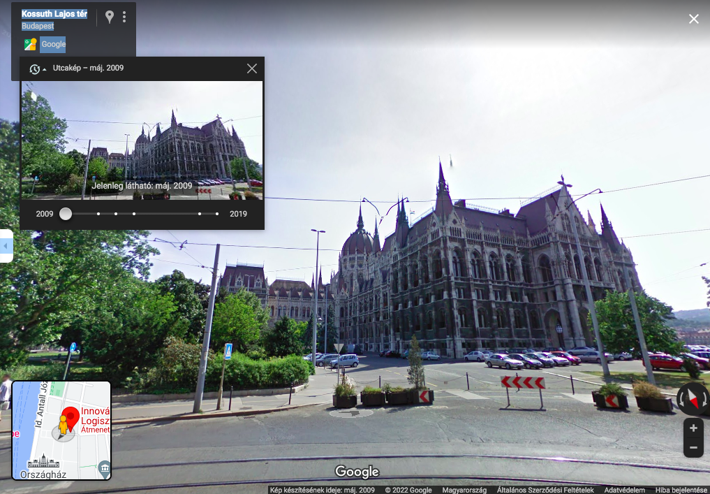 - Să facem clic pe ceas - va apărea o cronologie în care putem vedea de când este cea mai veche imagine a locului și putem glisa butonul de pe cronologie la ora care ne interesează!